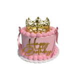 Our two layer crown cake comes with a Happy Birthday Topper and ribbons tied to the cake. The top of the cake has glitter for an accent.