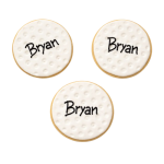 Check out these golf ball cookies! Handmade sugar cookies with dimples to mimic a golf ball and an inscription option! We have a minimum order quantity of 6 cookies.
